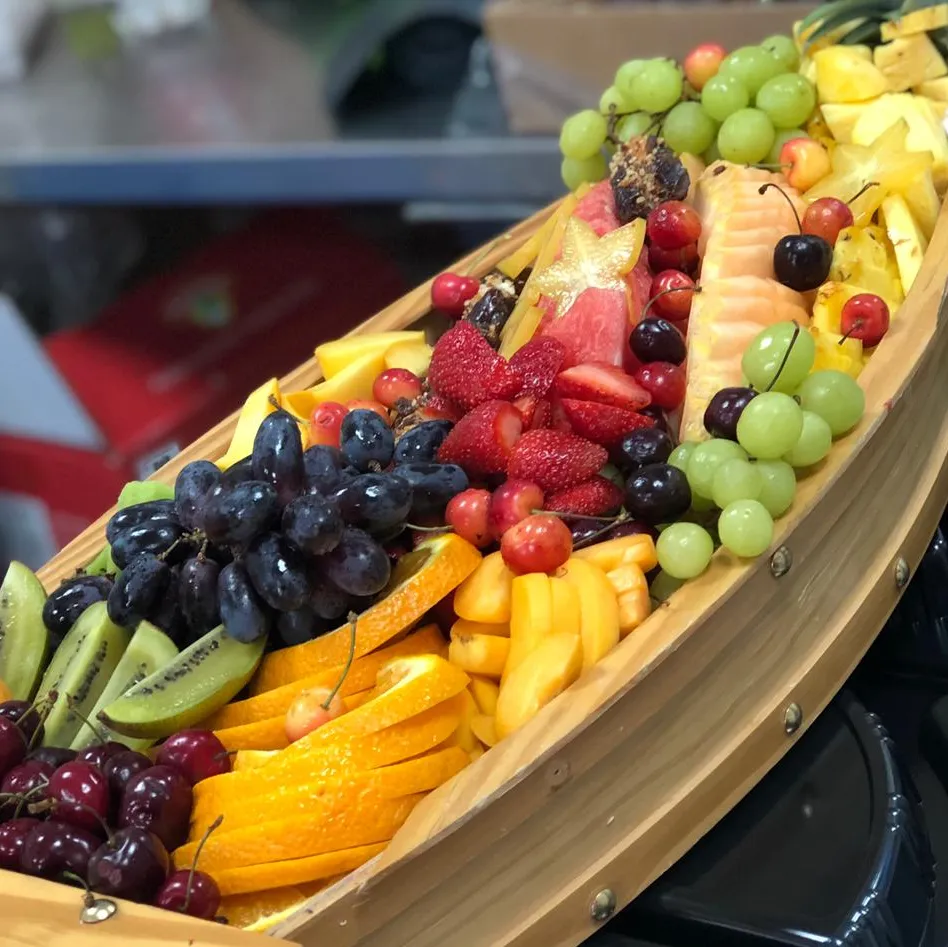 קיאק פירות 90 ס”מ הכולל פירות טרופיים ואקזוטיים, סושי שוקולד, סושי פירות וקינוחים מפנקים.